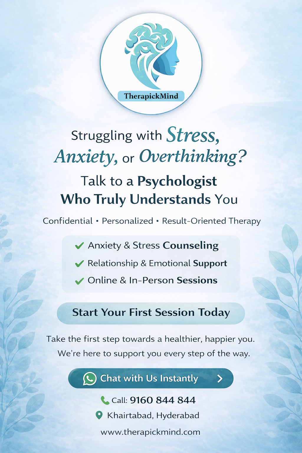 If you are searching for a trusted psychologist in Hyderabad, TherapickMind is here to support you.