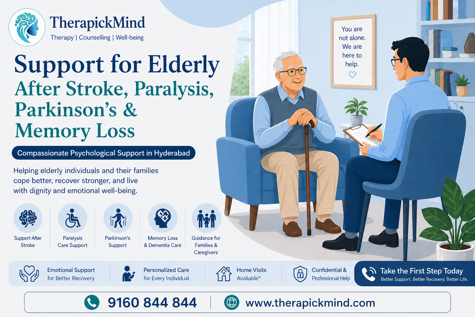 At TherapickMind, we provide specialized counselling and psychological support for elderly individuals dealing with neurological and emotional challenges.
