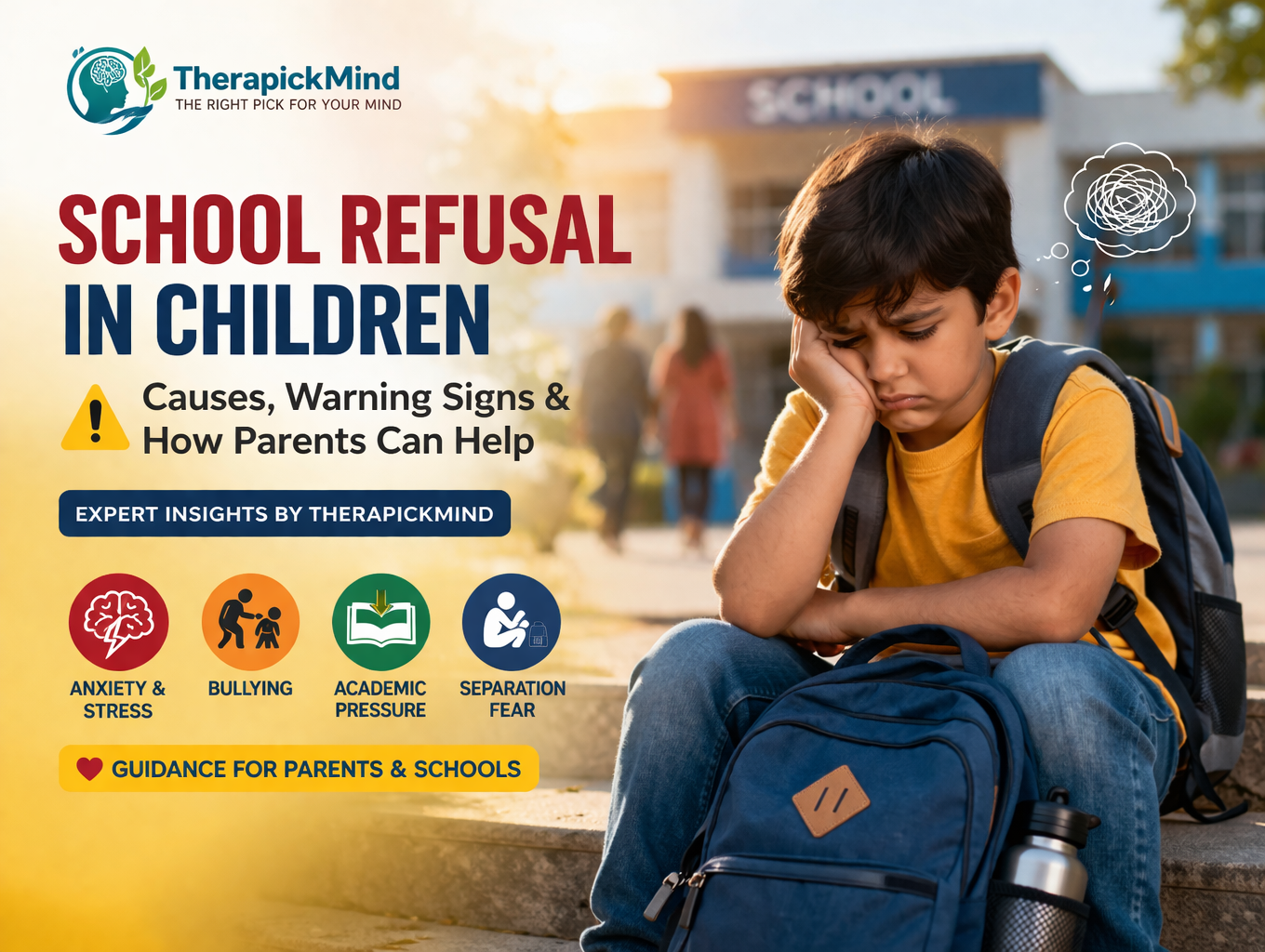 If your child is experiencing school refusal or emotional distress, TherapickMind offers professional counselling and school support programs tailored to children and families.